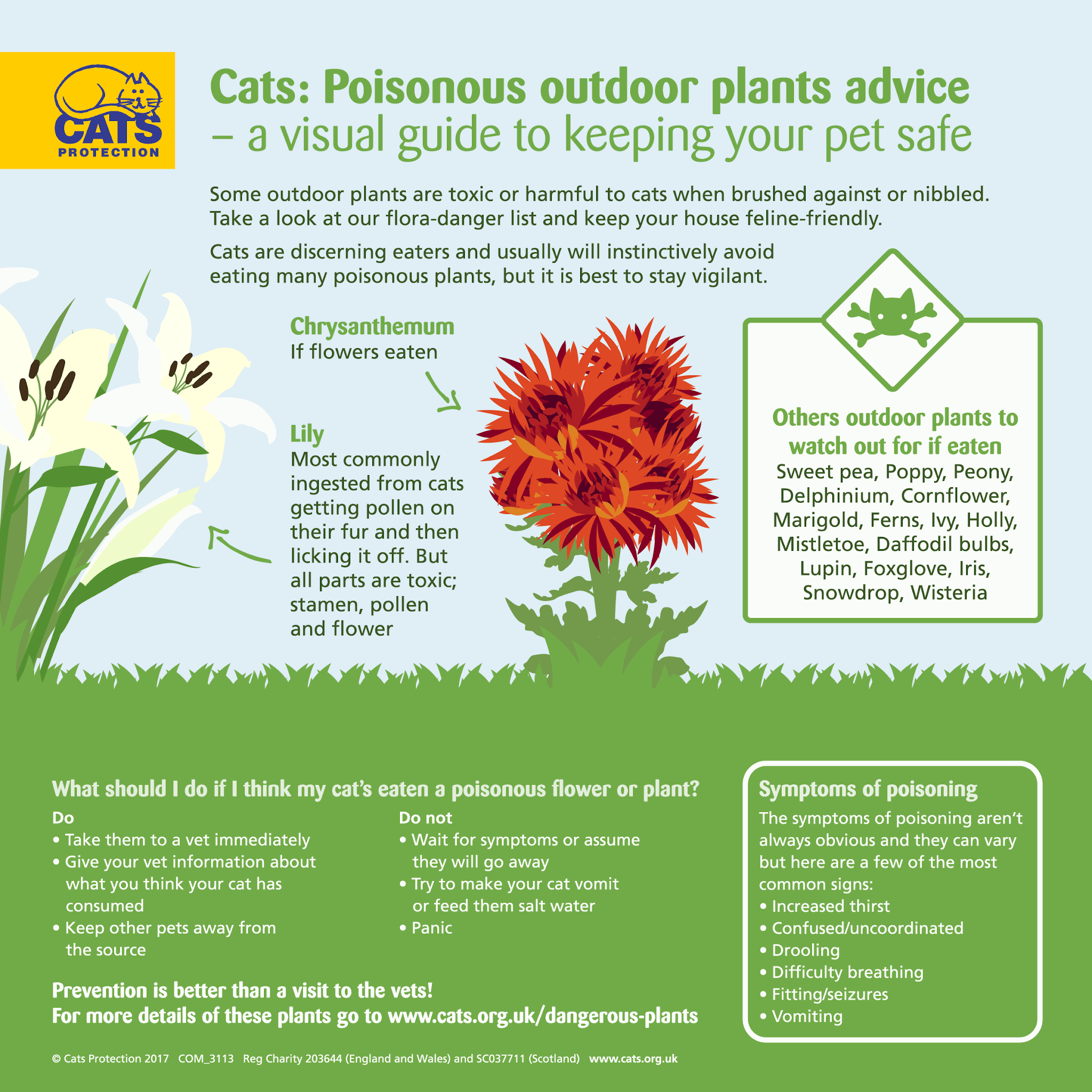 For a list of dangerous plants and flowers, visit https://www.cats.org.uk/help-and-advice/home-and-environment/dangerous-plants