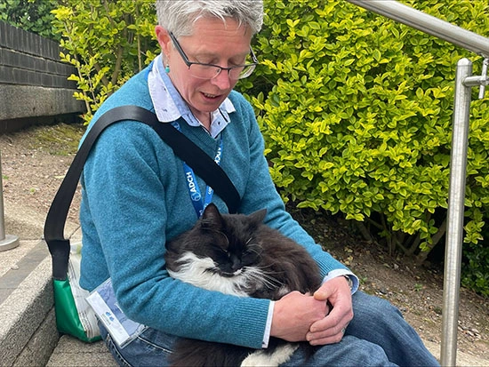 Beni Benstead, Manager of Cats Protection’s Tyneside Adoption Centre, found herself to be the chosen lap where the furry feline made himself comfortable.