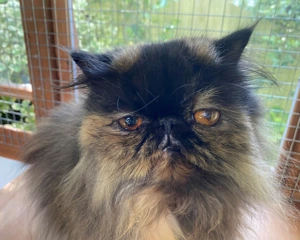 Recently Cats Protection Worthing (in Sussex) was asked to take in an ultra flat-faced Persian cat called Bumble after her owner was unable to go on looking after her. Bumble has an eye condition common in Persians called a corneal sequestrum. This means some of the tissue on the surface of her eye has died and formed a clump of dead tissue which often presents as a visible black circular area. It can be painful and cause the eye to become watery, red and inflamed.