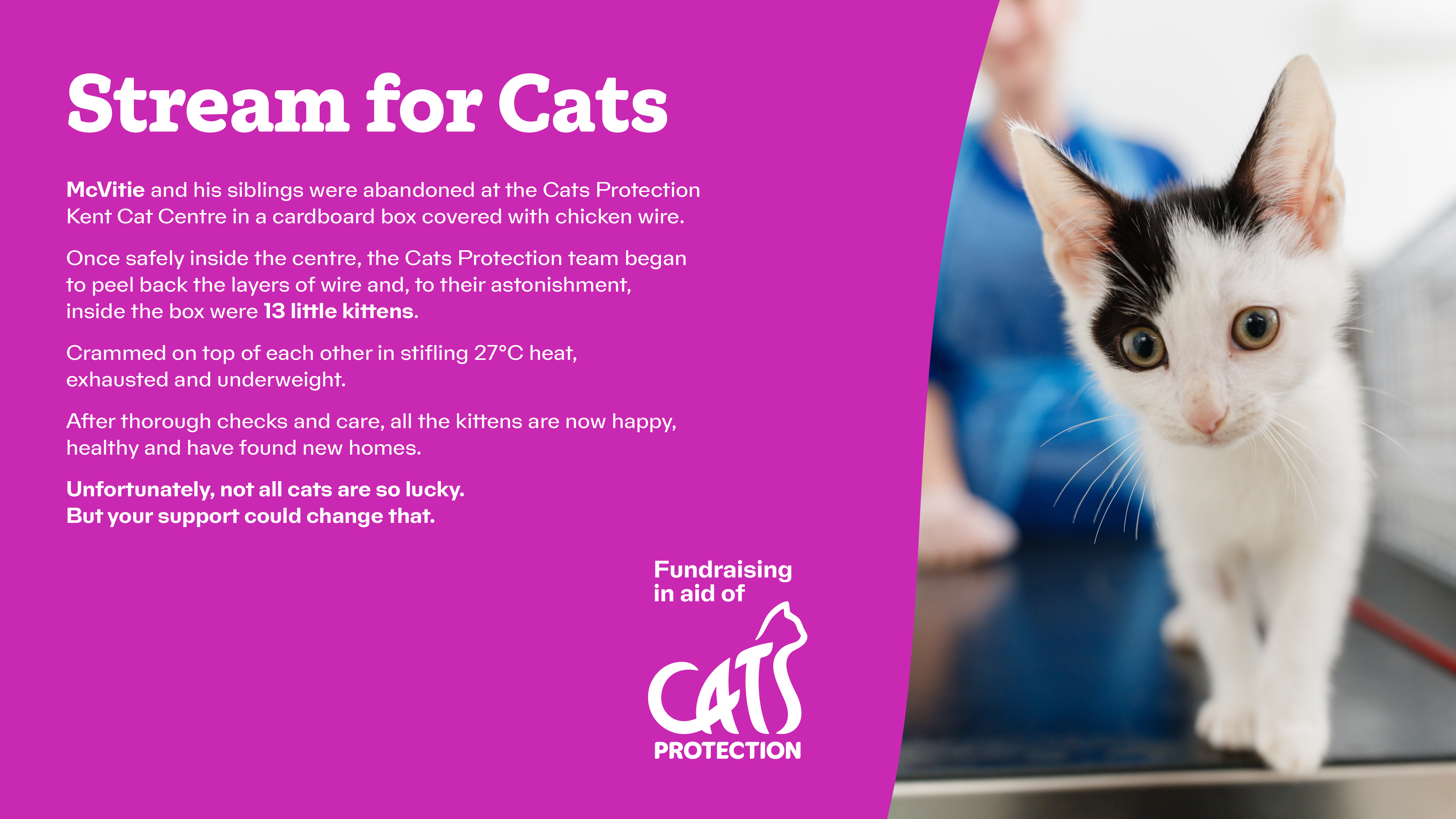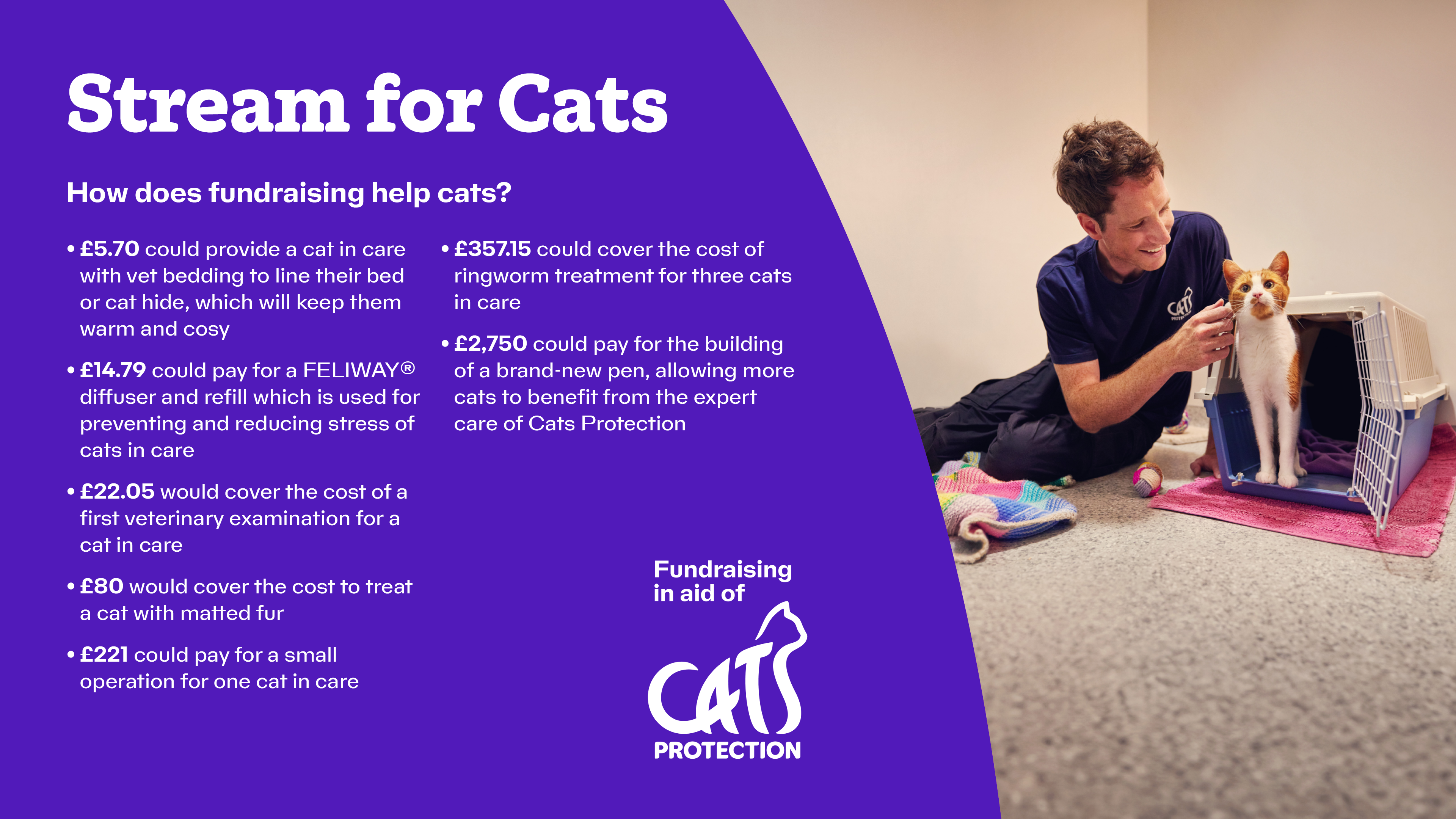 And remember, you're not just raising funds, you're also raising awareness and creating a better life for cats by promoting good welfare.
