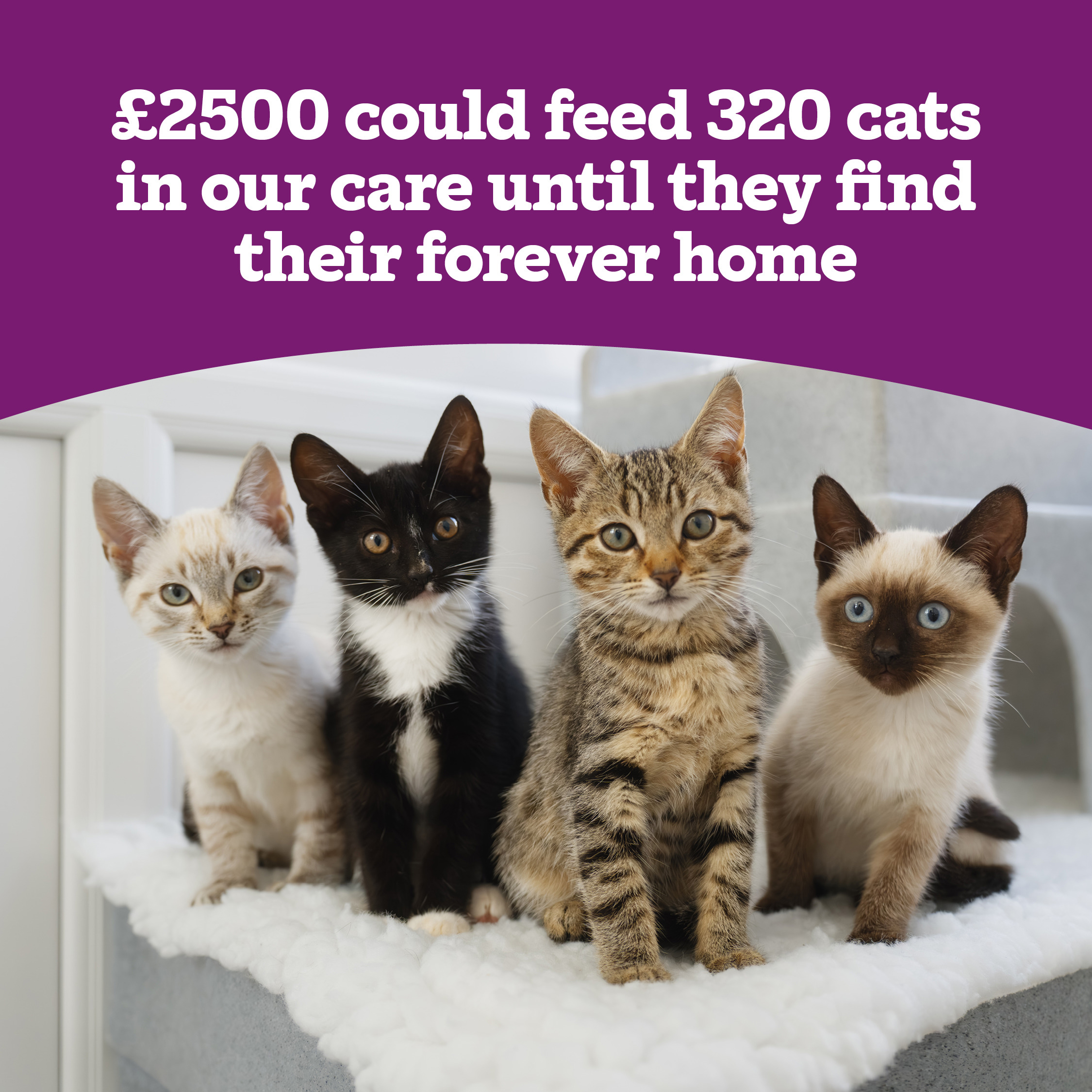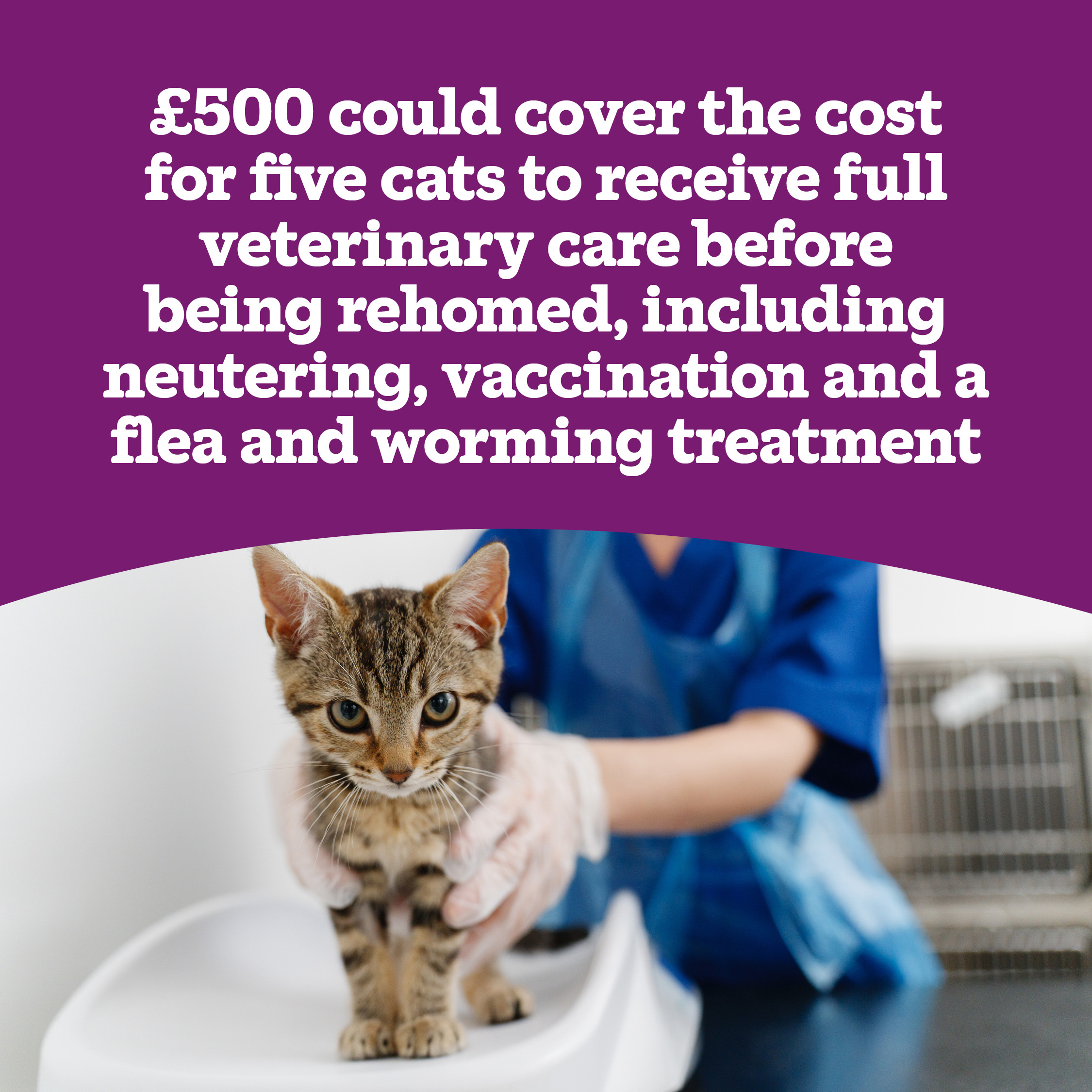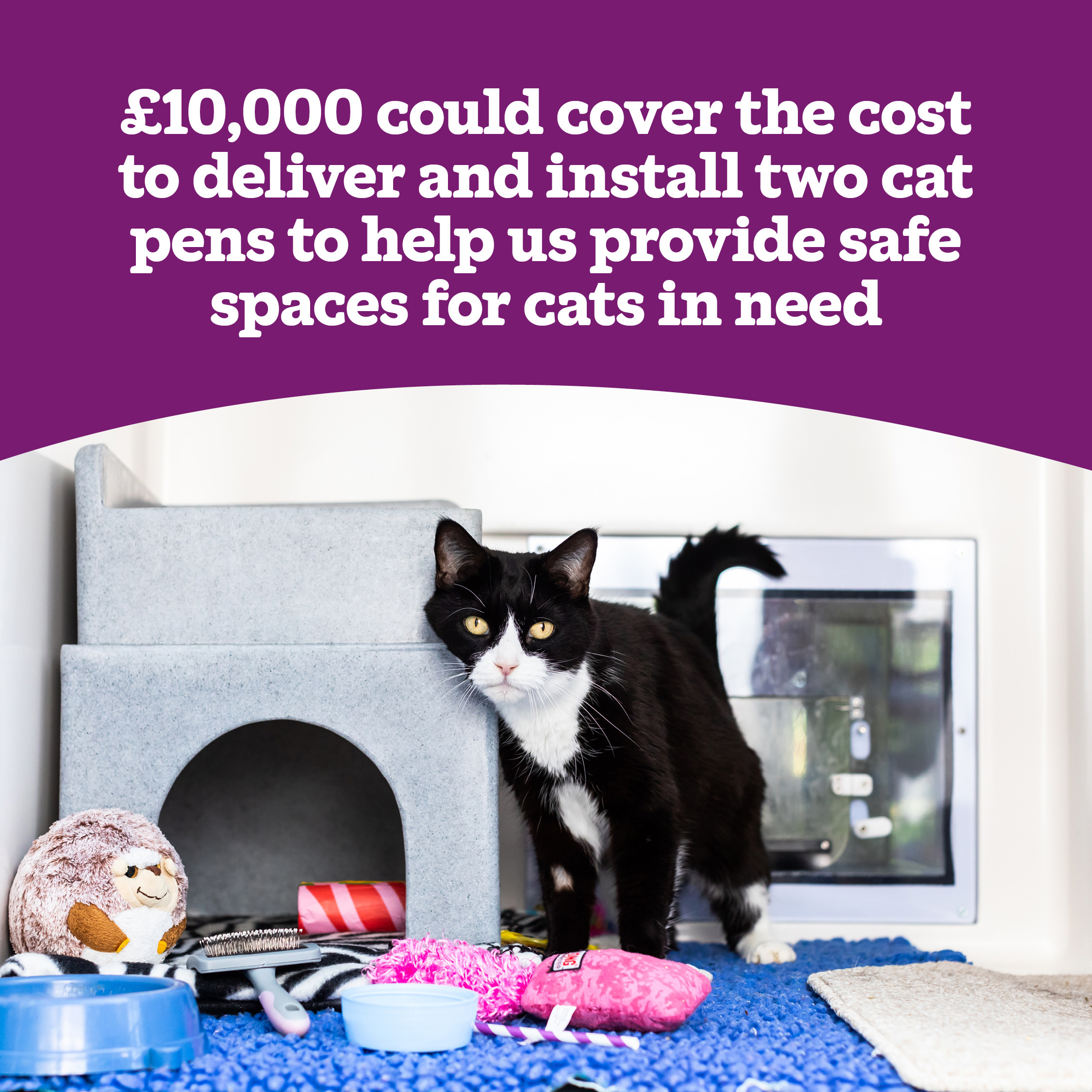 • £2,750 could pay for the building of a brand-new pen, allowing more cats to benefit from our love and expert care